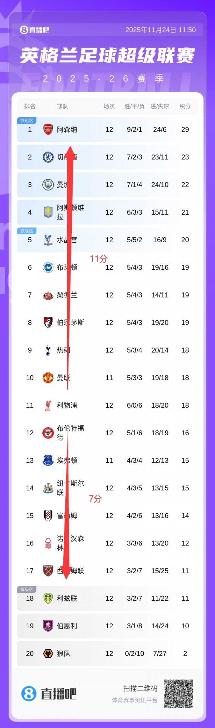 11月24日讯 英超第12轮大部分比赛齐已适度,曾一度5分领跑英超积分榜的利物浦本轮又吃到败仗,名次还是掉到了第11位。 在本赛季第5轮适度时,利物浦还以全胜战绩5分领跑积分榜,但在近7轮英超比赛中,他们1胜6负。现在利物浦和榜首的距离,比他们和左迁区的距离还远。 |
