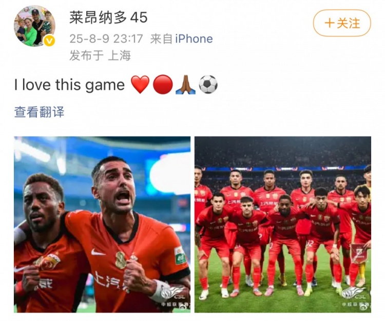8月10日讯 中超第20轮迎来焦点战“上海德比”,最终上海海港客场2-1力克上海申花,将两队积分差距松开至1分,争冠悬念迭起。 赛后为海港打入第二球的莱昂纳多更新社媒,晒出比赛照并配文写说念:“我爱这项通顺。” |