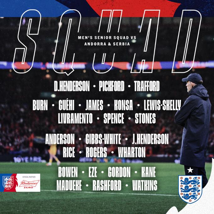 08月29日讯 英格兰队公布了新一期球员名单,凯恩领衔,拉什福德、赖斯、埃泽、亨德森等球员入选,阿诺德落第,萨卡、贝林厄姆、帕尔默则是因伤缺阵。这批球员将随英格兰成就9月份进行的世初赛欧洲区比赛。 英格兰球员名单: 门将:迪恩-亨德森(水晶宫)、皮克福德(埃弗顿)、特拉福德(曼城) 后卫:丹-伯恩(纽卡)、格伊(水晶宫)、里斯-詹姆斯(切尔西)、孔萨(维拉)、斯凯利(阿森纳)、利夫拉门托(纽卡)、斯宾塞(热刺)、斯通斯(曼城) 中场:安德森(诺丁汉丛林)、吉布斯-怀特(诺丁汉丛林)、亨德森(布伦特福德)、赖斯(阿森纳)、罗杰斯(维拉)、沃顿(水晶宫) 时尚:鲍文(西汉姆)、埃泽(阿森纳)、戈登(纽卡)、凯恩(拜仁)、马杜埃凯(阿森纳)、拉什福德(巴萨)、沃特金斯(维拉) 9月份两场世初赛,英格兰将在主场对阵安说念尔,客场对阵塞尔维亚。现在英格兰辞世初赛中3战全胜积9分,排行K组第1。
