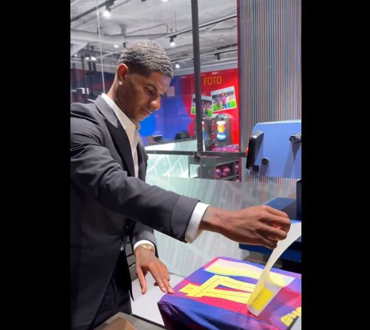 7月24日讯 巴萨依然官宣引进曼联时尚拉什福德,后者也遴荐了14号看成我方在新东家的号码。 巴萨官推也晒出了拉什福德在亮相庆典上我方脱手,为巴萨球衣印上14号的流程。