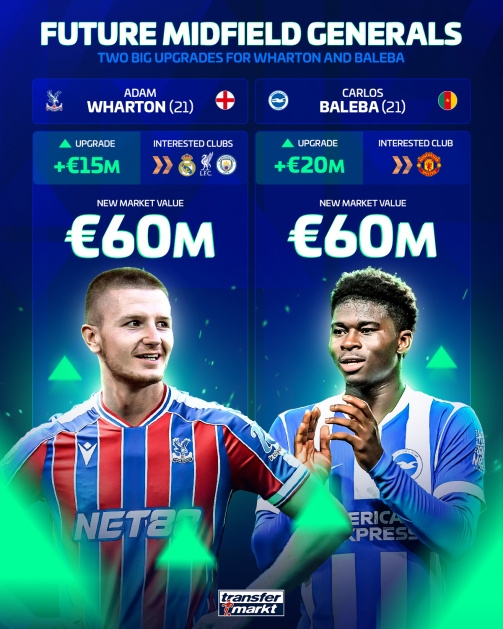 10月17日讯 德转当天更新英超身价,其中巴莱巴和沃顿王人赢得了大幅擢升,涨至6000万欧。沃顿本次的涨幅是1500万欧,巴莱巴涨幅是2000万欧。 德转的责罚员贯通加价原因:“巴莱巴和沃顿是当今宇宙足坛最有出路的两名注重型中场。本年夏天,曼联对巴莱巴产生了浓厚的爱慕,任何潜在签约的标价王人在1亿欧元傍边,而沃顿在皇马、利物浦和曼城等俱乐部也领有繁密追求者。” |