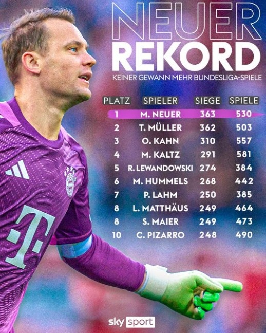 10月19日讯 德甲第7轮比赛,拜仁在安联球场以2-1的比分力克多特笑傲国度德比。本场比赛,拜仁门将诺伊尔迎来我方第530场德甲比赛,而他也获取了第363场见效,这让他很是穆勒成为德甲胜场数最多球员。 以下为德甲胜场数最多球员top10: 1、诺伊尔:530场363胜 2、穆勒:503场362胜 3、卡恩:557场310胜 4、卡尔茨:581场291胜 5、莱万:384场274胜 6、胡梅尔斯:442场268胜 7、拉姆:385场250胜 8、马特乌斯:464场249胜 9、迈尔:473场249胜 10、皮萨罗:490场248胜 |