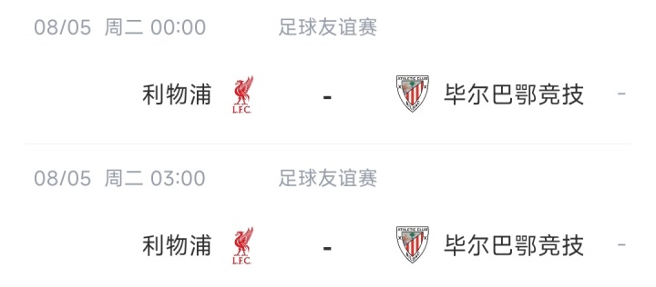 北京技巧8月5日0点、凌晨3点,利物浦将镇守主场,与毕尔巴鄂竞技举行两场背靠背友谊赛。