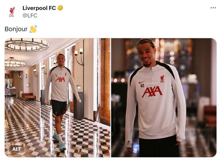 7月24日讯 利物浦官方社媒晒出图片,埃基蒂克已与球队会合。 7月24日凌晨,官方音信,利物浦签下23岁先锋埃基蒂克。据此前罗马诺报谈,转会费总价为9500万欧元,具体结构为8000万固定+1000万浮动,另有500万难以达到的要求。 今天,利物浦官方晒出埃基蒂克与球队会合的像片以及视频,同期用法语“Bonjour(你好)”配文。本周六,利物浦将与米兰进行热身赛。