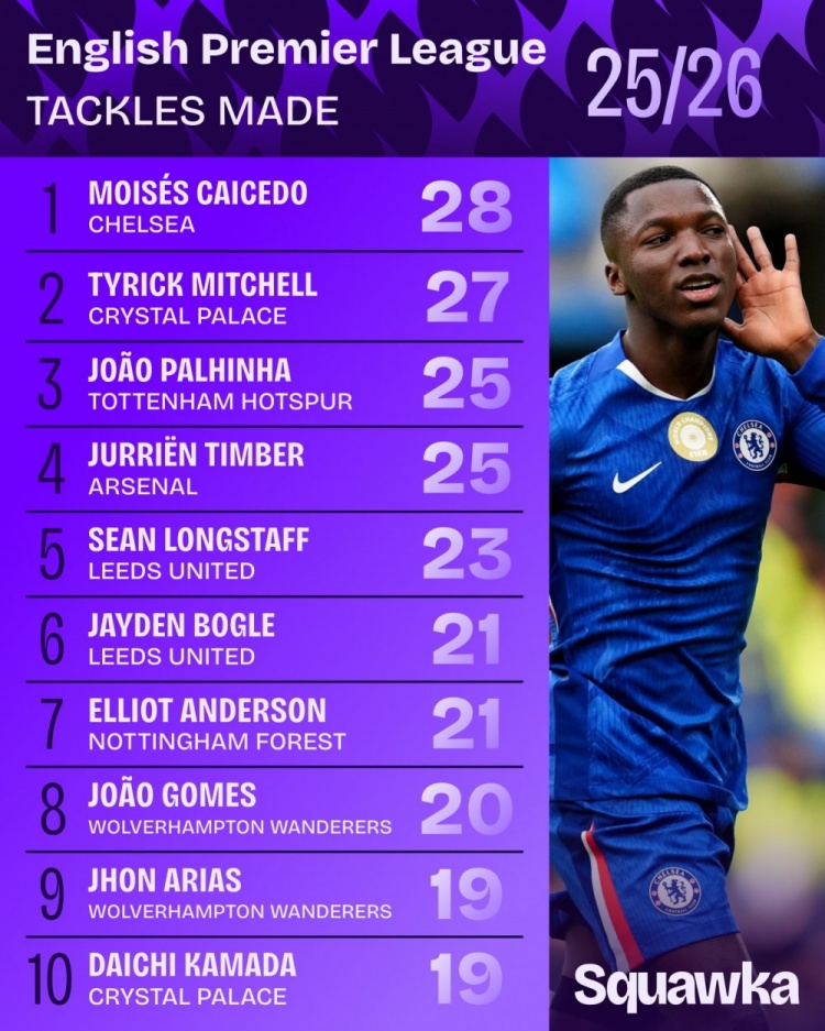 10月7日讯 Squawka统计了本赛季英超抢断榜前十,切尔西中场凯塞多28次位居第一,阿森纳后卫廷伯25循序四。 本赛季英超抢断榜前十: 1.凯塞多(切尔西)...