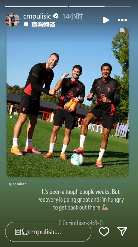 10月24日讯 普利西奇在个东说念主社媒共享教授照,他暗意我方渴慕回到赛场。 在本月的海外比赛日,米兰球员普利西奇在为好意思国队出战时受伤。昨天,米兰晒出普利西奇与帕夫洛维奇、奥多古的教授照,普利西奇转发并配文:这几周很沉重,但我的还原发达很好,渴慕重回赛场。 普利西奇现年27岁,本赛季也曾为米兰出战8次,孝敬6球2助攻,其心仪甲6战4球2助攻,他的身价为6000万欧。 |