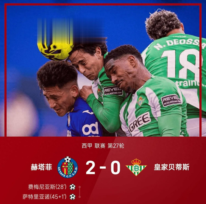 2-0爆冷! 费梅尼亚斯破门, 萨特里亚诺制胜球, 赫塔菲击败贝蒂斯