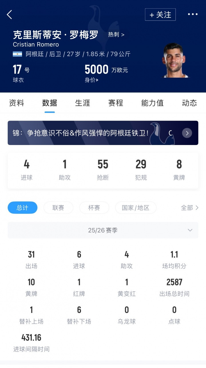 据西班牙的消息人士透露,并非马竞决策层中,并非所有人都认可引进罗梅罗,此外球员身价、热刺本赛季最终的排名以及罗梅罗本人的转会意愿,都会影响马竞之后的行动。