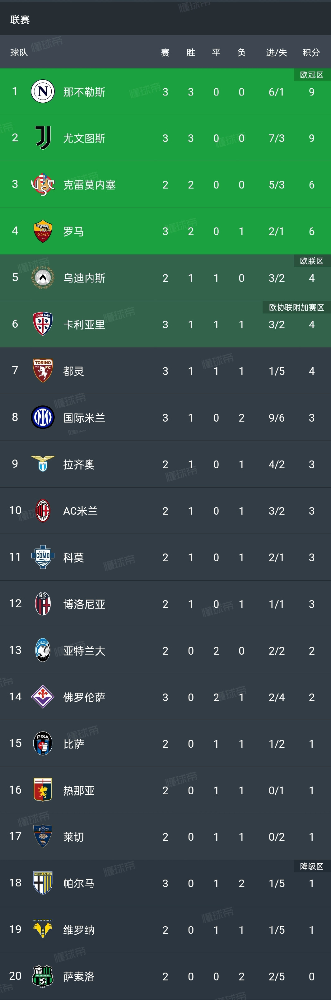 意甲第三轮铁心一场焦点对决,罗马主场0-1爆冷不敌齐灵,无缘三连胜,齐灵成绩赛季首胜,乔瓦尼西蒙尼打进制胜进球。 罗马新赛季开局可以,联接两个1-0最经济的比分取得两连胜,主造就加斯佩里尼合手教才气得到了招供。齐灵开局线路欠安,一平一负,0进球,丢5球。 在夏令转会窗口,罗马以2500万欧元从弗拉门戈转入了21岁的巴西后卫韦斯利利马。以2350万欧元从朗斯转入了24岁的摩洛哥中场艾纳维,并租赁了阿斯顿维拉的利昂贝利和布莱顿的埃文弗格森。 罗马排出了3412阵型,马蒂亚斯苏莱和迪巴拉搭档双前卫,克里斯坦特担当队长,恩迪卡,詹卢卡曼奇尼和埃尔莫索搭档三后卫,夸迪奥科内,韦斯利利马,艾纳维等首发出场,首发身价2.17亿欧元。齐灵首发身价只消8030万欧元,23岁小将阿斯拉尼领衔登场。 上半场比赛,罗马攻势如潮,射门以及射正次数占据上风,但仅仅风声大雨点小,得宠不得分呀,上半场两边有威迫的要紧也并未几,破门乏术,地点非常千里闷,半场铁心,0-0完了。 第59分钟,齐灵前场要紧,恩贡戈助攻,乔瓦尼西蒙尼禁区弧顶处左路内切兜射破门,齐灵冲破僵局,客场1-0逾越罗马。 这比赛真的有道理了。罗马在主场,身价占上风,名次占上风,要紧也占上风,但等于无法进球,要不是门将斯维拉尔线路出色,罗马约略会过期更多。加斯佩里尼亦然接连换上埃文弗格森,皮西利,沙拉维,切利克等东谈主。为什么不上多夫比克呢? 罗马天然联接换东谈主,但并莫得赢得较好的契机,也莫得扳平比分。 最终全场比赛铁心,罗马主场爆冷0-1不敌齐灵。这比赛罗马也能输。 罗马两连胜被斥逐,吃到新赛季联赛第一场败仗。 齐灵取得赛季首胜,能够客场打败罗马,线路亦然不俗,全取3分,名次直线飙升。 在9月14日凌晨铁心的比赛中,那不勒斯客场3-1完胜佛罗伦萨,德布劳内和霍伊伦各进一球。尤文图斯主场4-3绝杀国外米兰,七粒进球中屡次寰球波,其中小将瓦西里耶阿季奇绝杀进球更为精彩。 跟着以上三场比赛的铁心,意甲最新积分榜如下: 那不勒斯三连胜,积9分,排在第一位。 尤文图斯三连胜,积9分,排在第二位。 克雷莫内塞少赛一场,积6分,排在第三位。 罗马两胜一负,积6分,排在第四位。 国外米兰一胜两负,积3分,排在第八位。 齐灵一胜一平一负积4分升至第七位。 |