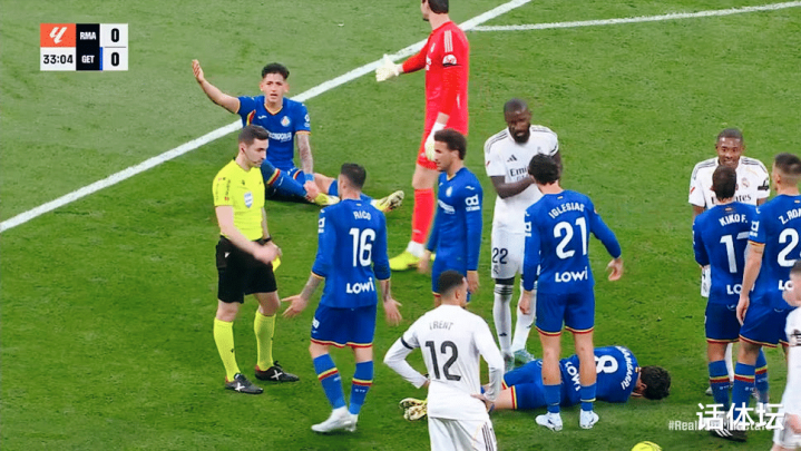 虽然实力并不占优,但是赫塔菲的攻势却丝毫不逊色!从比赛开始,就与强大的皇马,展开了针锋相对的较量,并且数次攻到禁区内制造险情。维尼修斯、居莱尔连续浪费良机。吕迪格膝盖恶意顶里科的头部,导致后者痛苦翻滚!但是裁判竟然没有给出任何的表示。